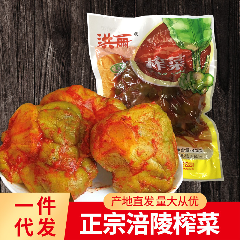 フウ陵搾菜頭全形の搾菜真空包装400g-5斤の漬物の塊のボールの下で料理の卸売りをします。