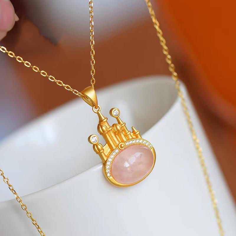 粉晶モザイクペンダントネックレス女性夢幻城ピンク光シンプルファッション気質女性