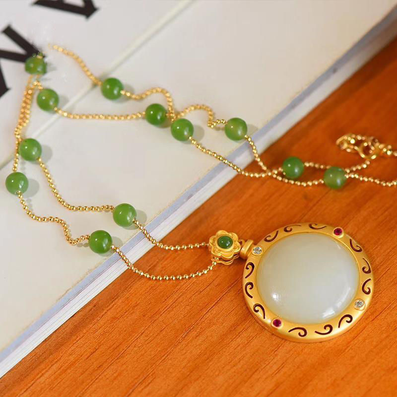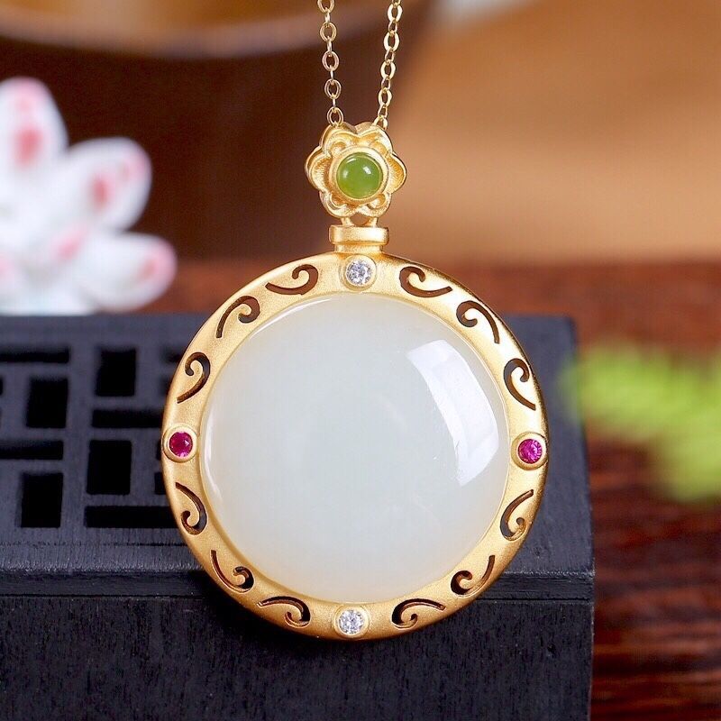 925銀モザイク天然翡翠ペンダント円形幸運ペンダントジュエリー工場現場配送
