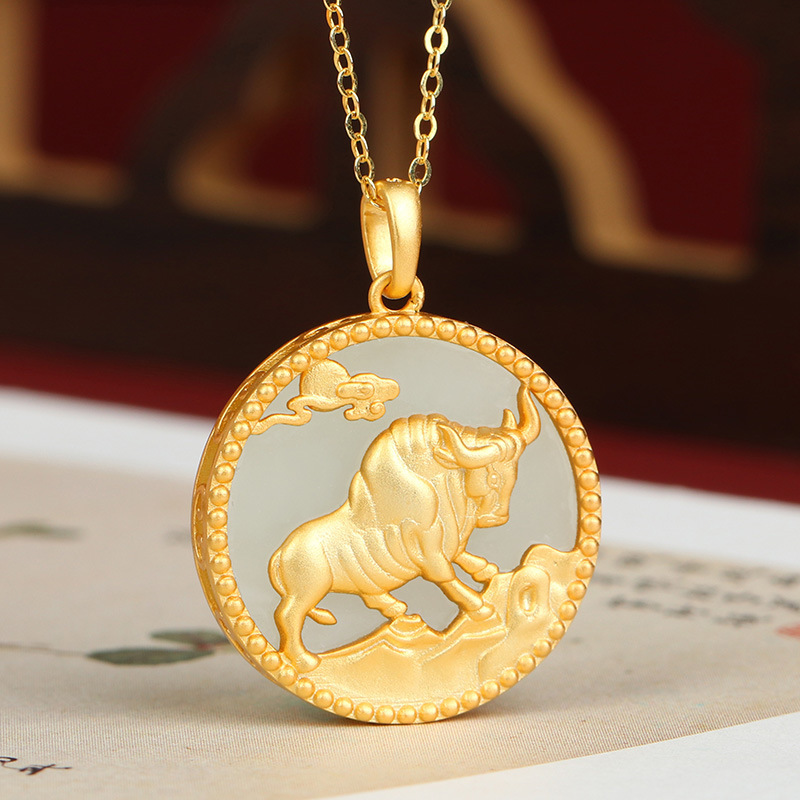 生肖牛円牌ネックレス女銀メッキ玉無事牌ペンダント女牛年本命年誕生日プレゼント