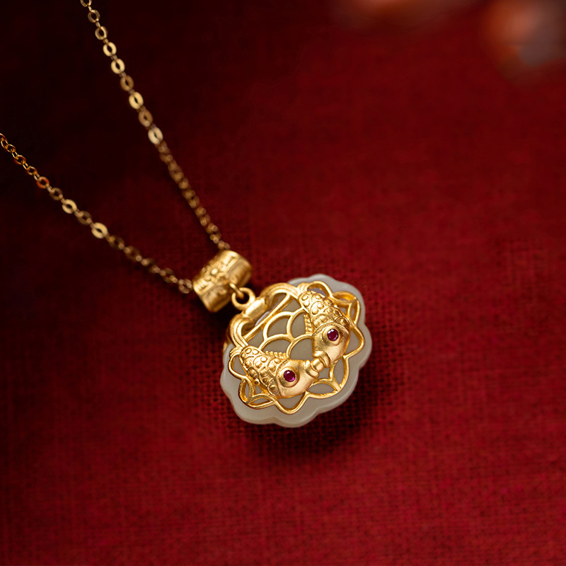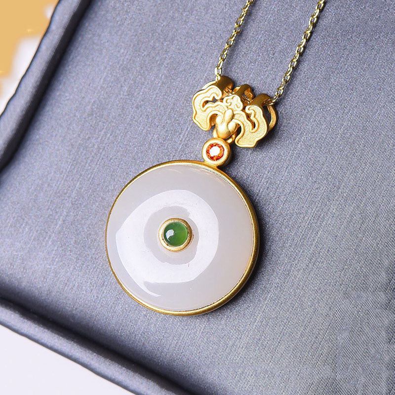 玉円盤ペンダント白玉女潮デザイン感ネット赤沙金古風ネックレス女鎖鎖ネックレス