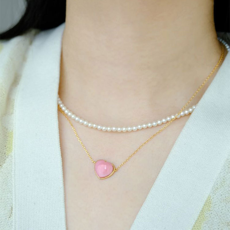 925純銀天然石桃心愛ネックレスプレゼントネックレスペンダントシンプル気質古風ペンダント