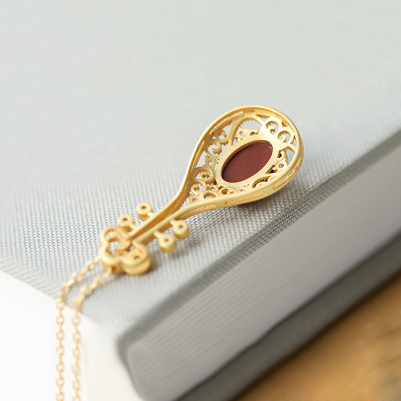 精品玉宮風潮復古南紅銅襟骨鎖ペンダントネックレス
