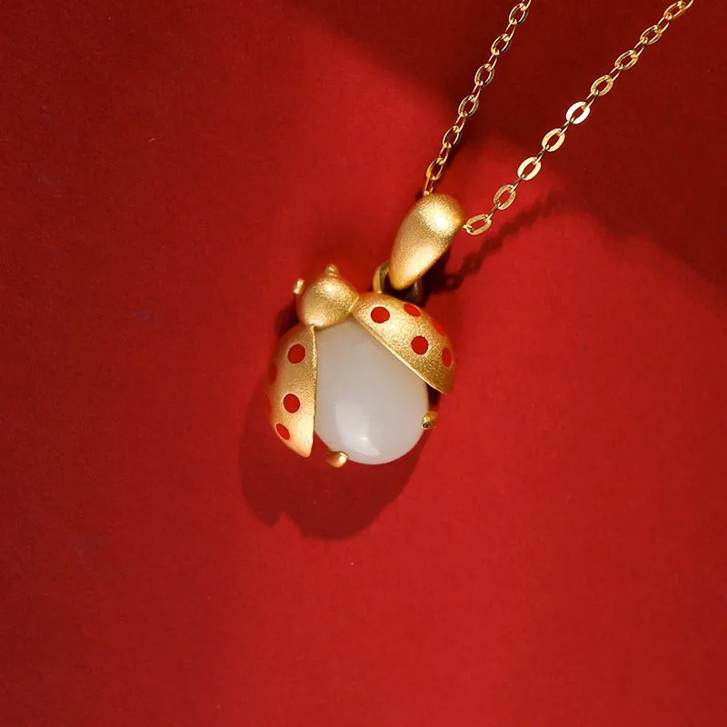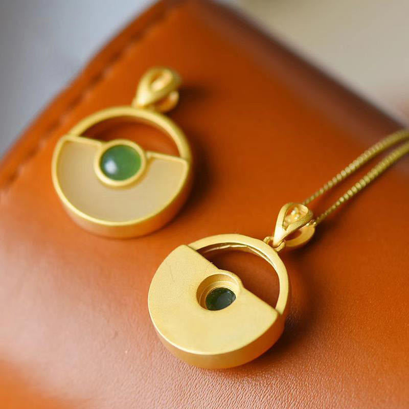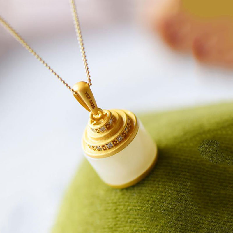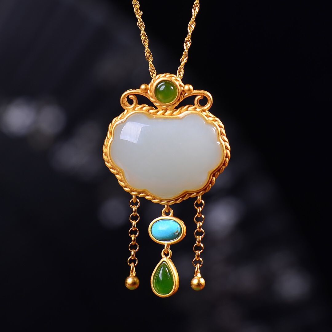文湾とモザイク和田玉器鎖骨女文ペンダント天然金メッキネックレス人格十分