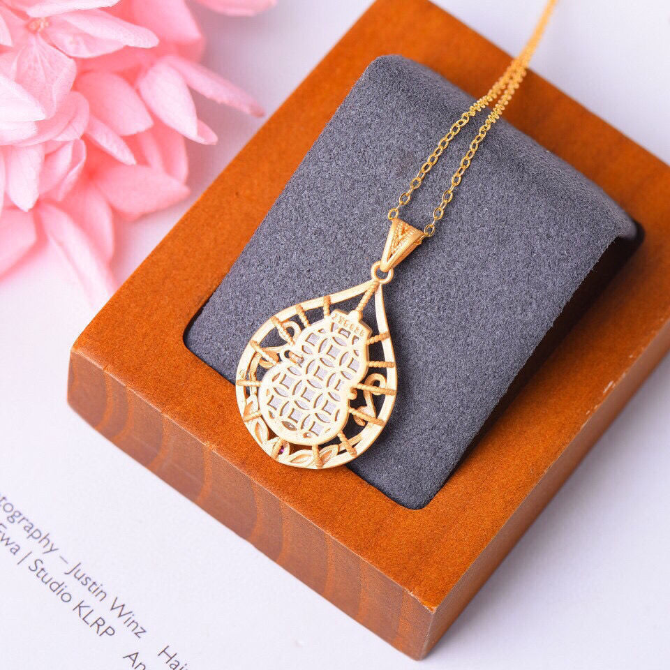 如意モザイクひょうたん収縮風宮玉佩優しい個性金メッキ銅襟骨鎖