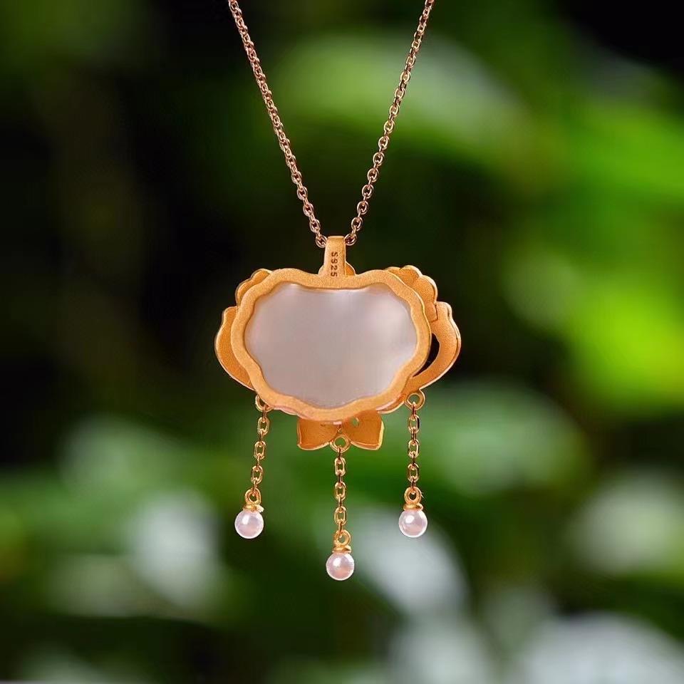 純銀古法和田玉質祝福袋ペンダントネックレス玉質ペンダント925銀金玉
