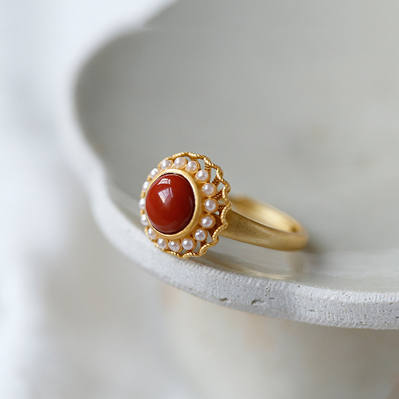 真珠の宮廷風の天然の赤い瑪瑙の指輪の美しい和田の女性の指輪の復古のファッションの女性の指輪