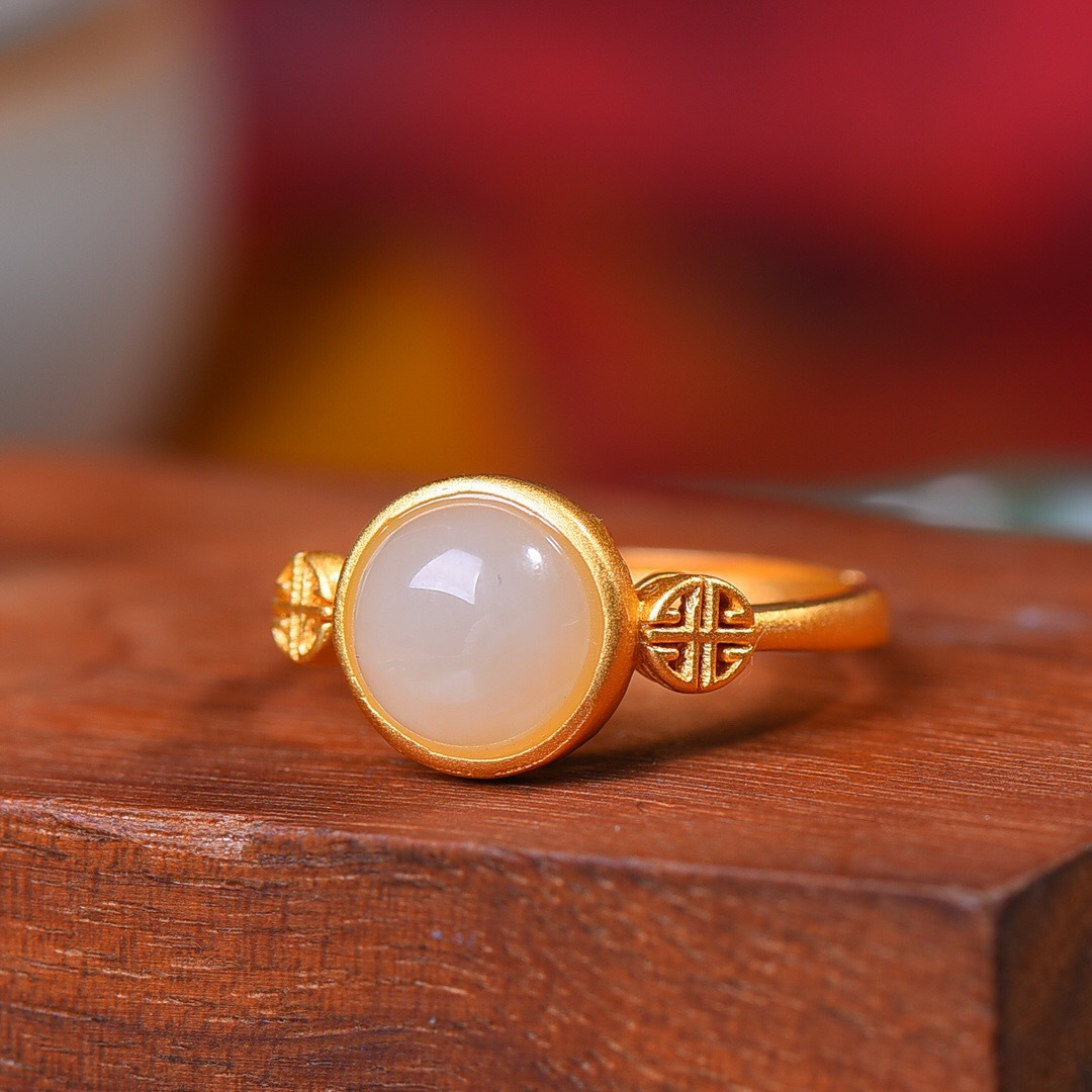 民族風は黄金をめっきして和田碧玉の指輪を嵌め込みます。