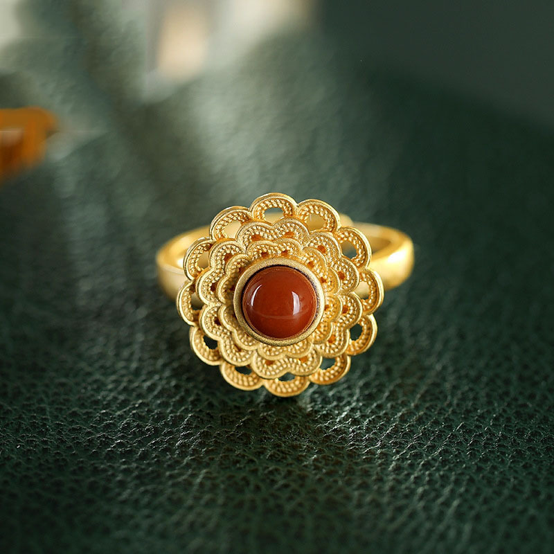 日系南紅瑪瑙指輪シンプルアクセサリーレトロ少女ins開口メッキ925銀人差し指指輪女