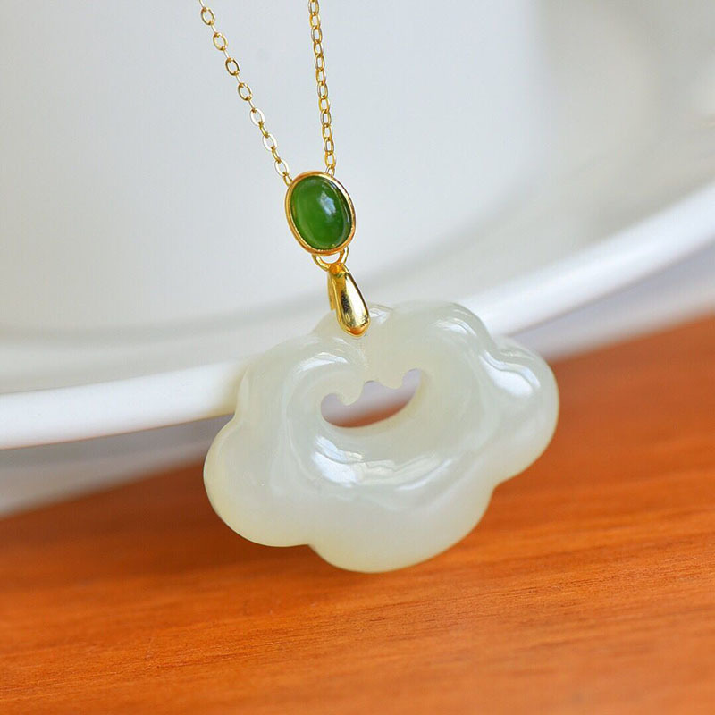 彩雲天然和田玉小清新ペンダントレトロ金メッキ宮廷風デザイン典雅鎖女