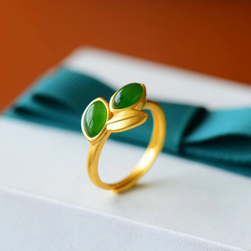 金色の指輪天然和田玉碧玉指輪葉芽宮廷風レトロアクセサリー女性アクセサリー田園風
