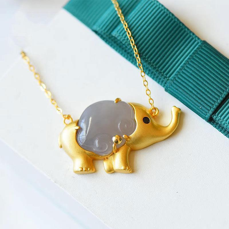 漫画かわいい象のペンダントはめ込み和田烟紫玉金メッキ小さな锁レトロファッションネックレスレディース