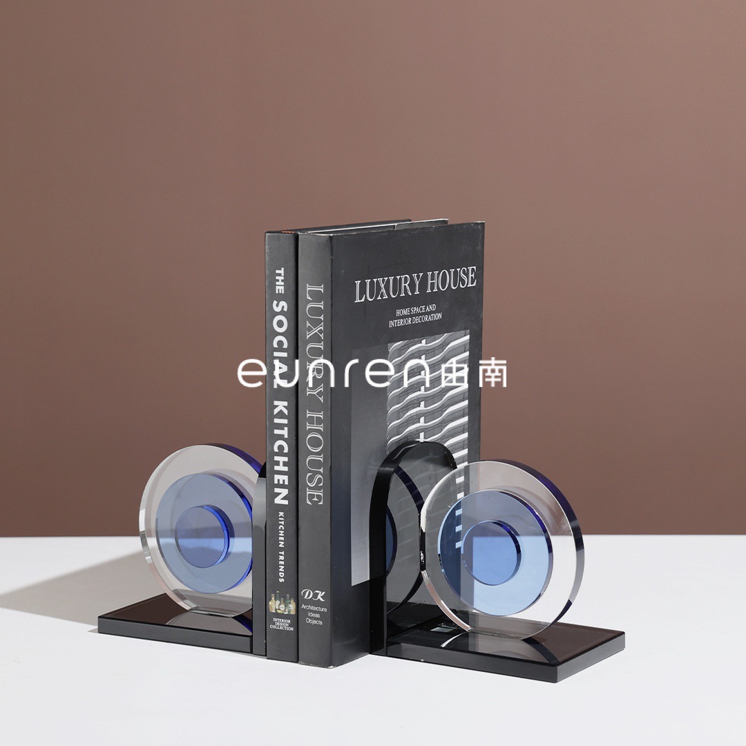 現代の極めてシンプルな創意的な青い目の水晶の本は書斎の見本の間の事務室のデスクトップの装飾品を飾ることに頼っています。