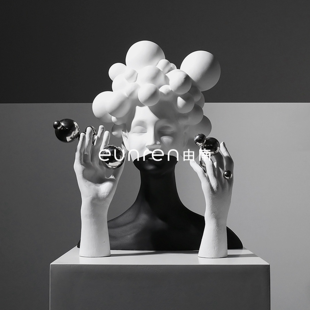 シンプルでモダンな白い樹脂抽象的な幾何学芸術雲の中の人のサンプルプレートの間のリビングルームのテレビの棚のデスクトップの置物