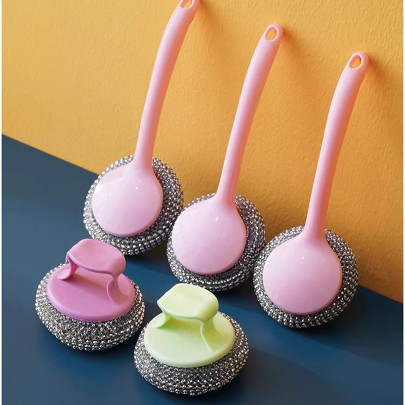 家庭用鍋洗い用スチールウールボール、ハンドル付き鍋ブラシ、キッチン掃除用ブラシ、スチールウールボール鍋ブラシ、掃除用ボール、食器洗い用ブラシ、鍋洗い用ボール
