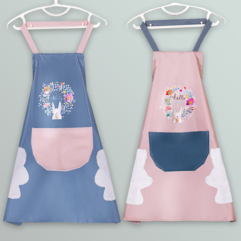 花輪兎エプロンキッチン拭き可能エプロン家庭用ポケット付き防水防油花兎ノースリーブエプロンカバー