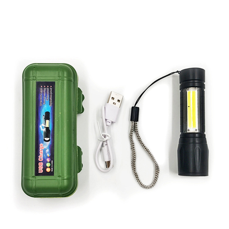 Led小型懐中電灯サイドライト付き強い光伸縮ズームusb充電セット家庭用便利なミニ懐中電灯