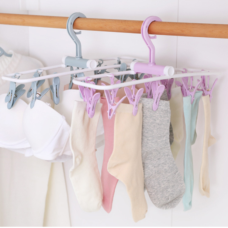 多機能防風折りたたみ物干しハンガー12クリップ下着靴下物干し子供プラスチック物干しラック