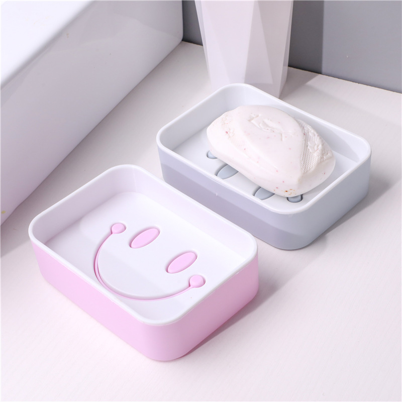 ヨーロッパ式の二重の水切りは厚くて楽しい笑顔のトレーの石鹸の箱のプラスチックの四角形の漫画の浴室の洗濯の石鹸の箱を厚くします。