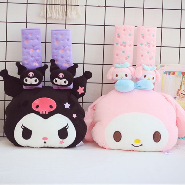 日本のかわいい少女の心の美楽ティのクロミの漫画のダウン綿の車の枕の刺繍の安全帯カバー