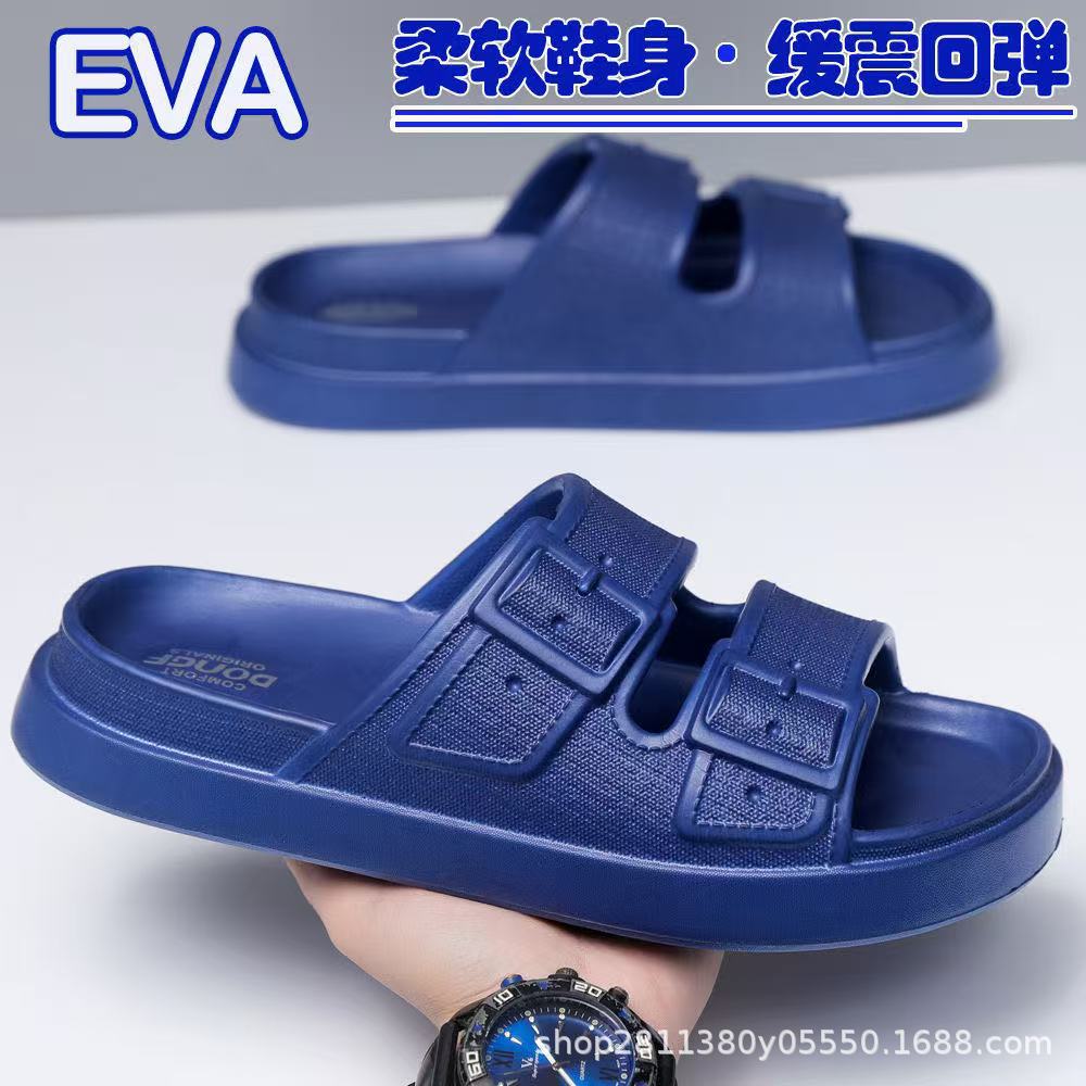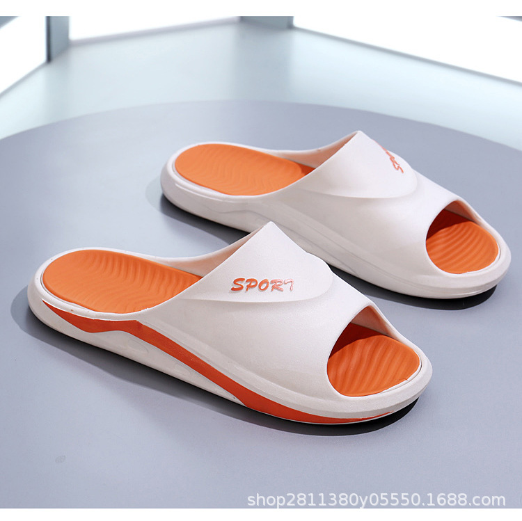 スリッパ男の夏は運動の厚い底を着て外出します。