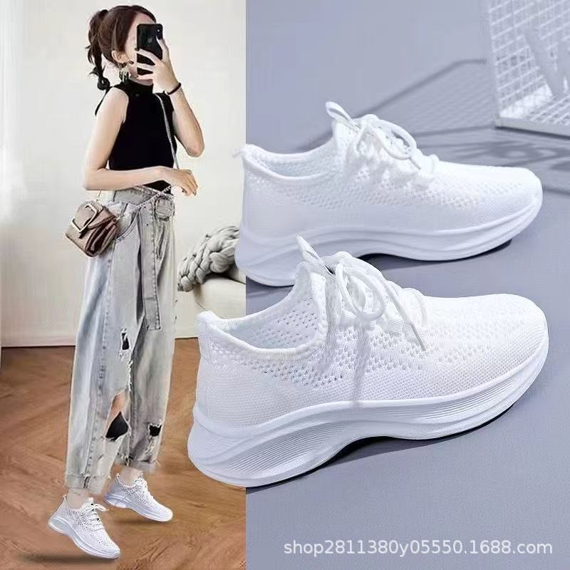 女性のためのスポーツシューズ 2024 新しいファッション韓国スタイルのトレンディなフライ織り通気性ノンスリップ軽量ランニングシューズ卸売外国貿易モデル