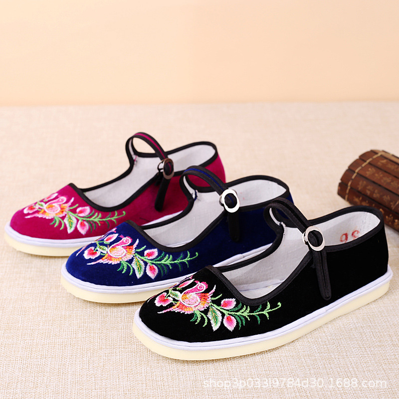 古い北京布靴女性刺繍彩鳳中国古風民族漢服布靴牛筋底滑り止め広場ダンス靴