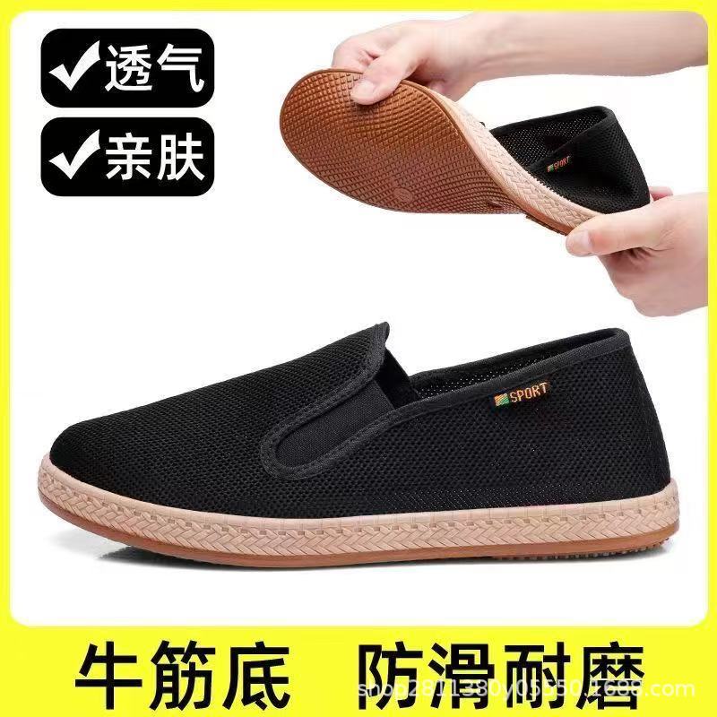 ラウンドトゥの新しい春と秋の古い北京布靴紳士靴カジュアルシューズ中高年カジュアル布靴メンズ夏黒作業靴