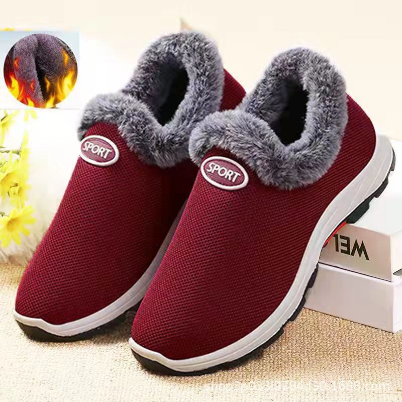 2023冬のウサギの毛とベルベットの厚い綿の靴のお母さんは足で暖かくて快適なカジュアルな綿の靴を漕いでいます。
