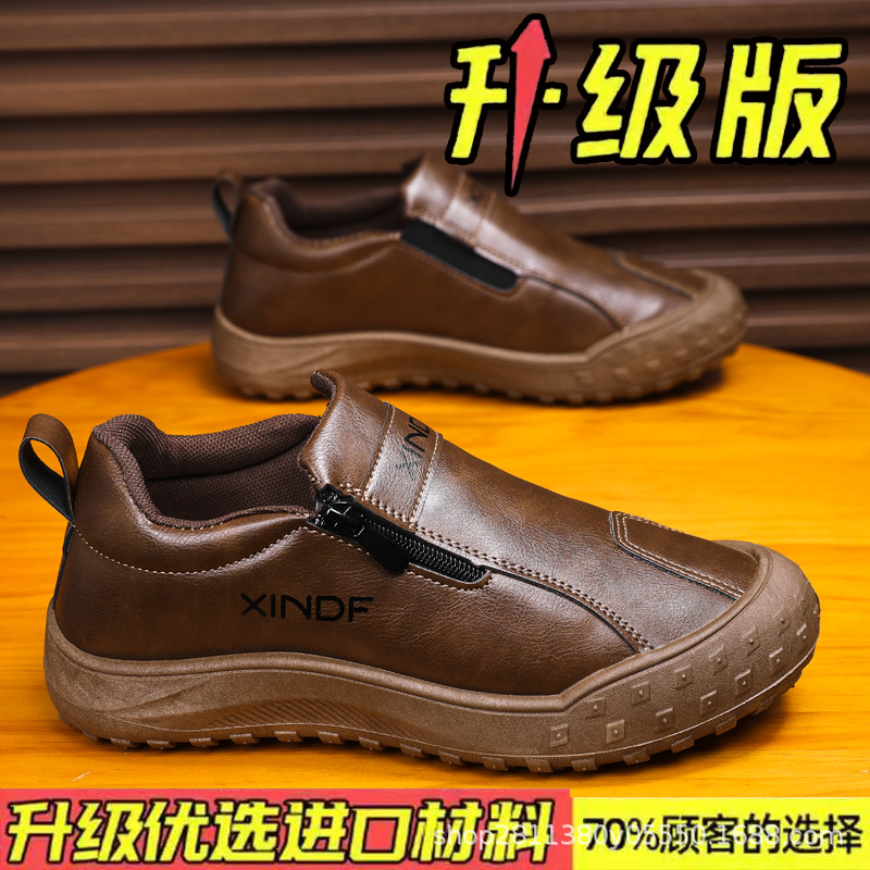 男性靴2024新型冬ファッションレジャー運動百合革靴側ファスナー怠け者一足メーカー潮靴