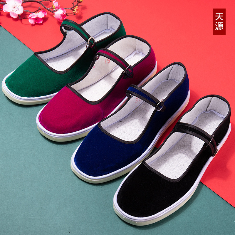 【民族風復古婦人靴】古い北京婦人布靴手作り千層牛筋底綿布靴カジュアル黒布靴