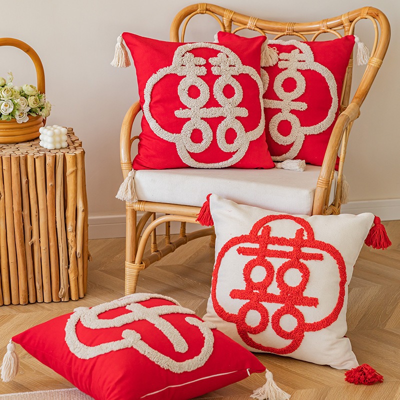 喜字抱き枕フリース抱き枕カバー結婚祝い中国式刺繍枕カバーリビングソファー新婚プレゼントクッション
