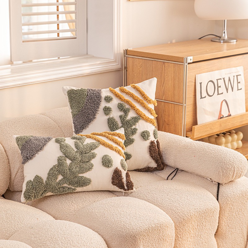 現代ins風幾何学タフティング抱き枕ネット赤民宿ホテルソファー寝室抱き枕カバー車腰は枕に寄りかかっている