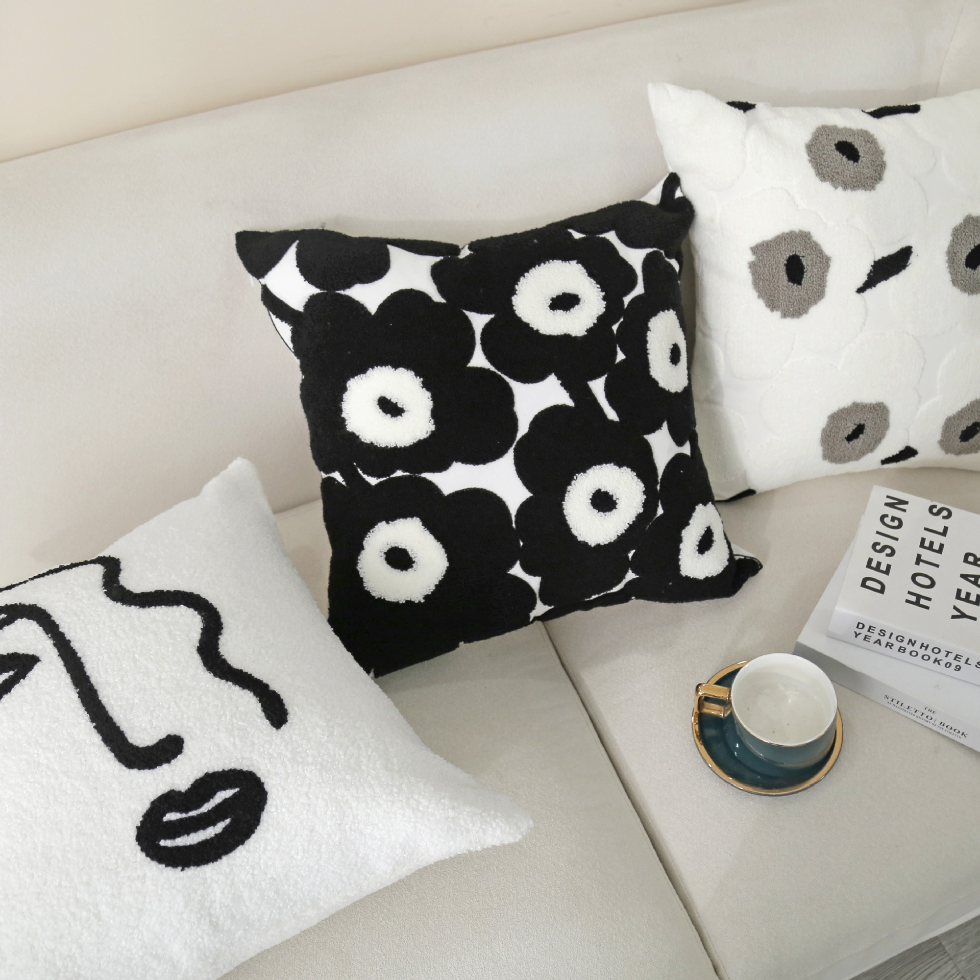 モダンなシンプルな黒と白のソファ抱き枕クリエイティブホームリビングルームクッション刺繍取り外し可能な正方形抱き枕カバー