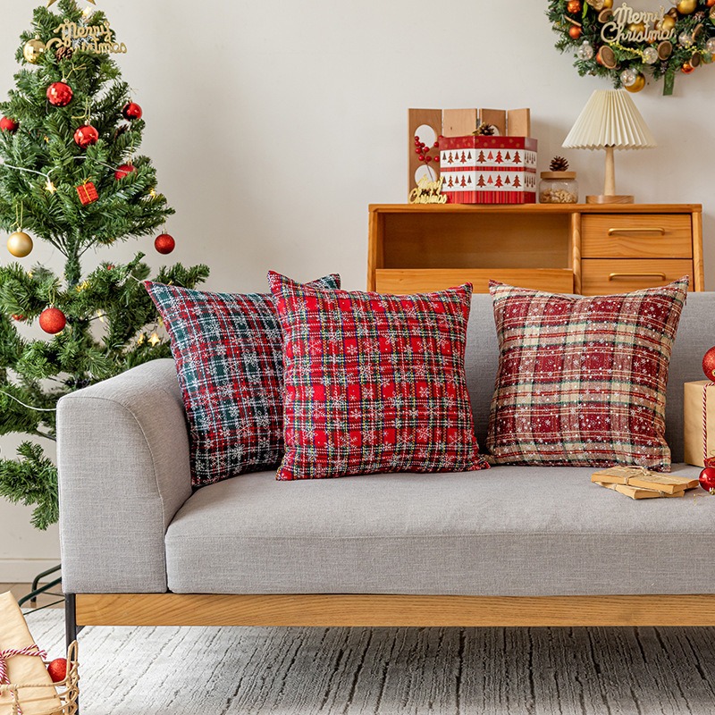 クリスマスの赤い緑のフリンジの家は枕カバーの寝室のソファーをつなぎ合わせて枕カバーを取り外すことができます。