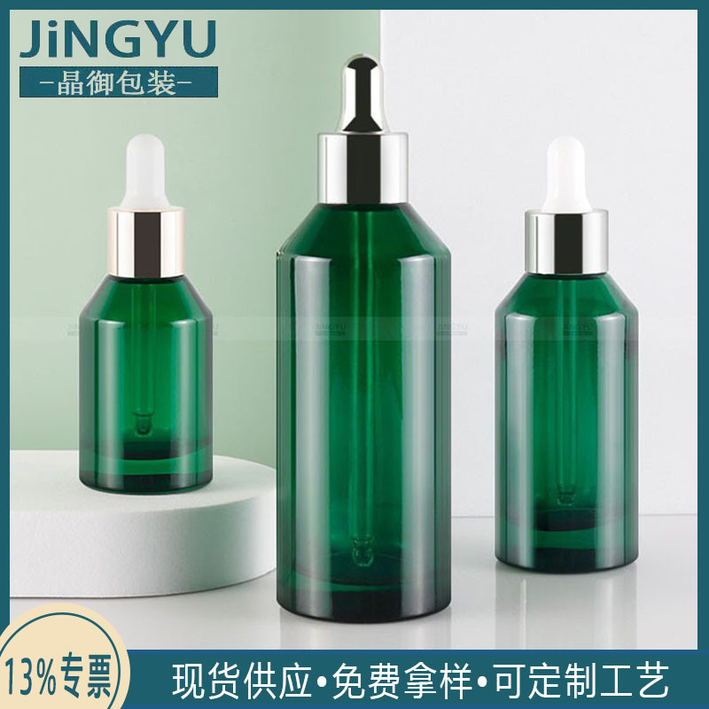 現物30ml 50ml 100ml厚い斜め肩ガラス瓶精油瓶緑宝瓶精華液原液滴管瓶