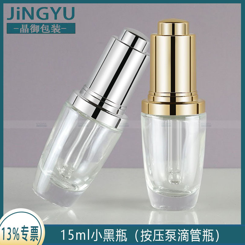 現品15mlの小さい黒い瓶はポンプの点滴瓶の精華液の原液を押して瓶の化粧品のガラス瓶を分けます。