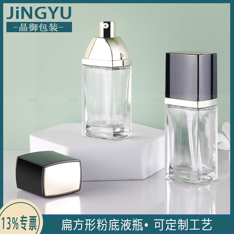 30ml透明角型ファンデーションボトル押圧ローションボトルカバークリームボトルbbクリームボトル化粧品ガラス瓶