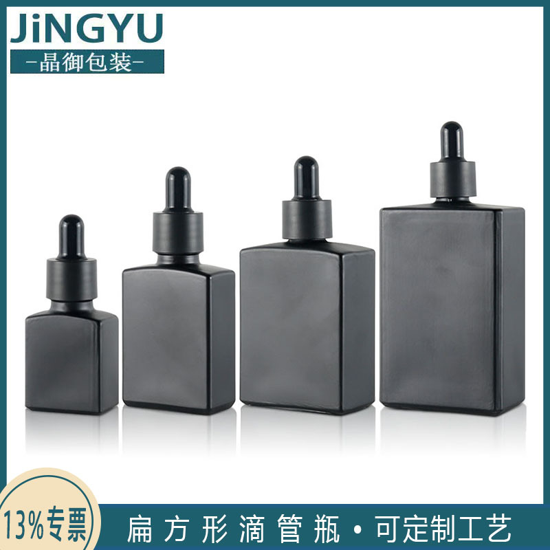 15ml扁方精油瓶30mlマットブラック扁方滴管瓶50ml角型精華液瓶100ml精油瓶