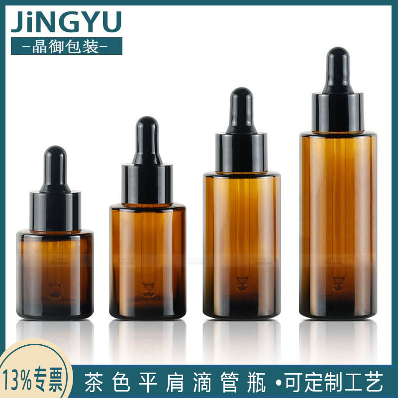 現品茶色平肩直丸瓶20ml 30ml 40ml 60ml茶色平肩滴管瓶原液精華液瓶