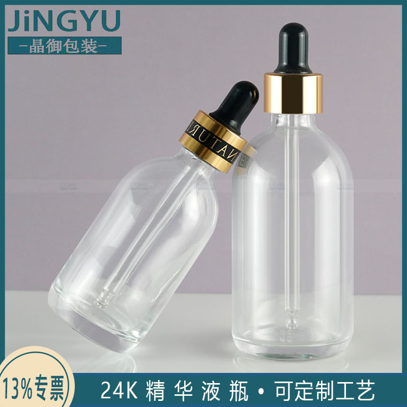 現物60ml 100ml 24k黄金精華液瓶金箔ヒアルロン酸原液瓶透明精油滴管瓶