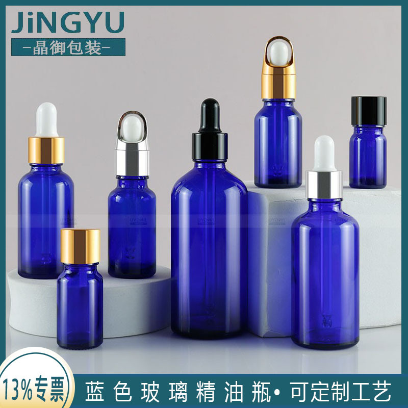 スポット5-100mlブルー精油瓶ブルーガラススポイト瓶アロマボトル純露精油瓶