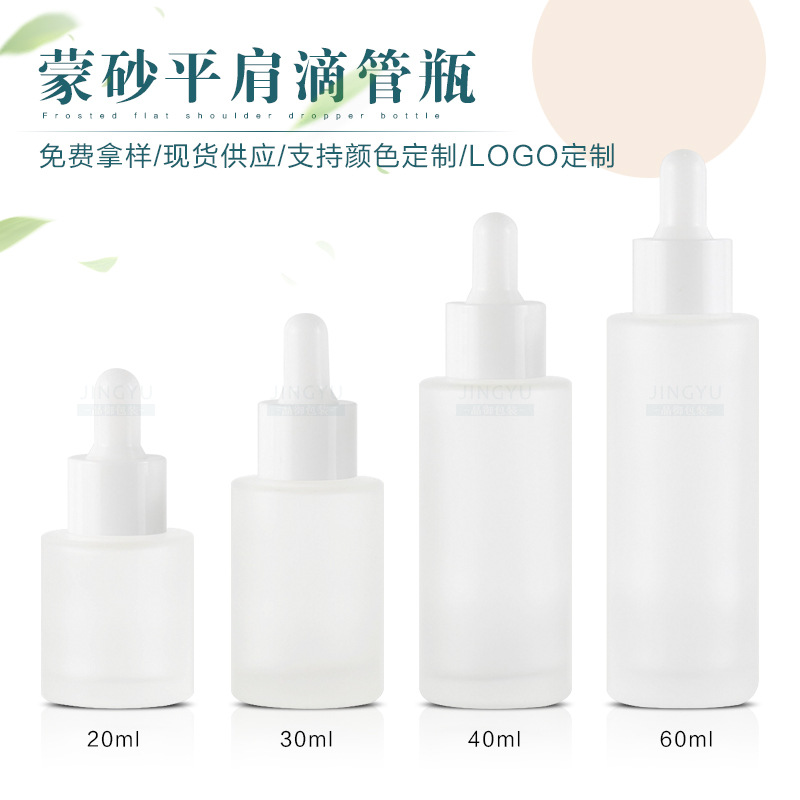 現物20/30/40/60ml平肩精華液瓶透明平肩直丸瓶蒙砂原液滴管瓶