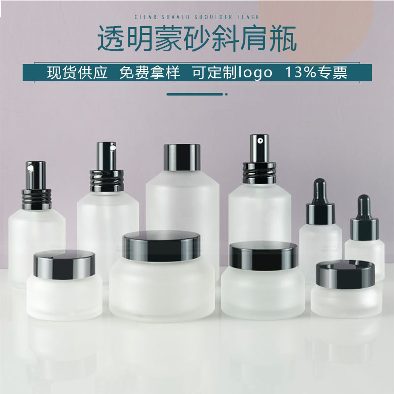 現物透明蒙砂斜肩瓶15/30/60ml斜肩スポイト瓶乳液瓶斜肩クリーム瓶