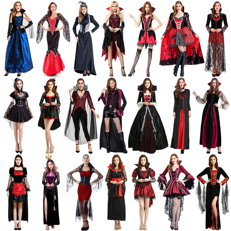 ハロウィンの成人の服装の女性のcosの悪魔の女王は西洋のゴシックの吸血鬼の魔女のスーツを装います。