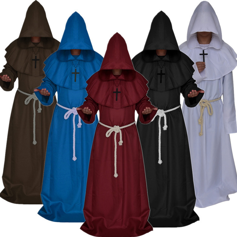 中世フード付きローブマント長袖呪術師ガイド五色マントハロウィーン呪術師ローブ服装