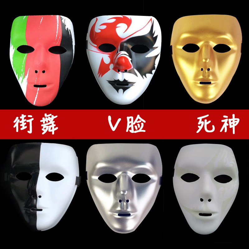 ハロウィーンマスク恐怖悪魔街舞会は手描きの白い鬼歩舞マスク男女街舞マスクを披露する
