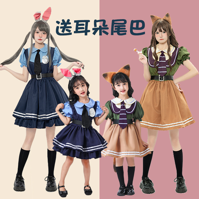ハロウィーン狂った動物城ウサギ警官judyジュディcos子供大人ニックキツネ漫画服装女