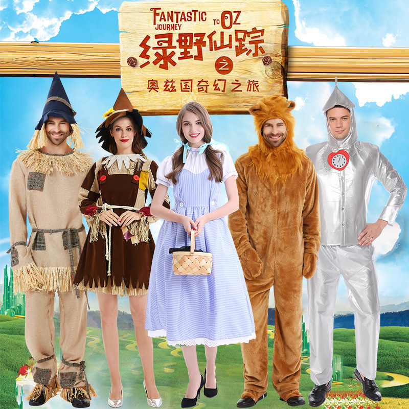 ハロウィーンcosオズの魔法使いの服のかかしのライオンの服装の桃の楽糸の錫人の鉄の皮人の公演の服装