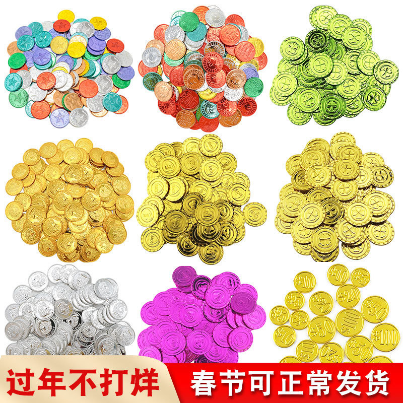 子供のゲームの道具の7色の幸運な星の金貨の海賊の金貨は願い事をしてプラスチックの五芒星の笑顔の貨幣を望みます。